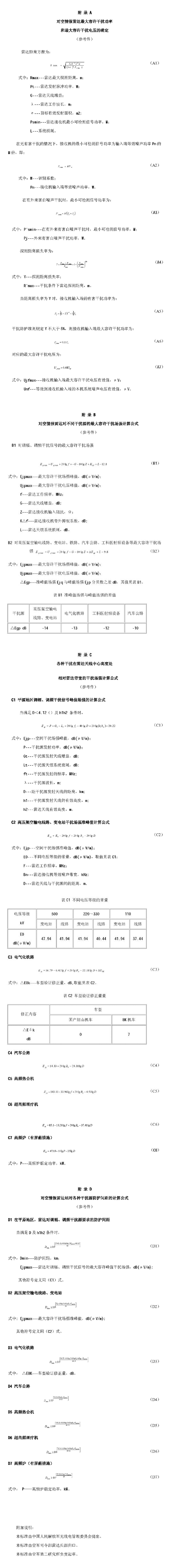 注:a.特殊情況下,按干擾防護(hù)準(zhǔn)則的要求,參照有關(guān)附錄進(jìn)行測(cè)算。